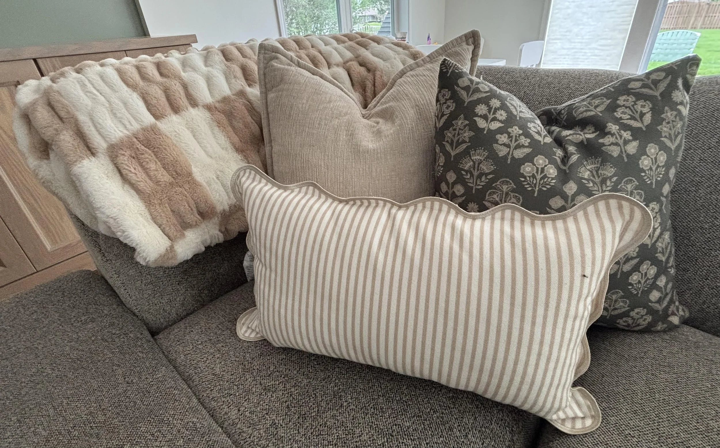 The Throw Pillow Combination I’m Using on My Grey Couch